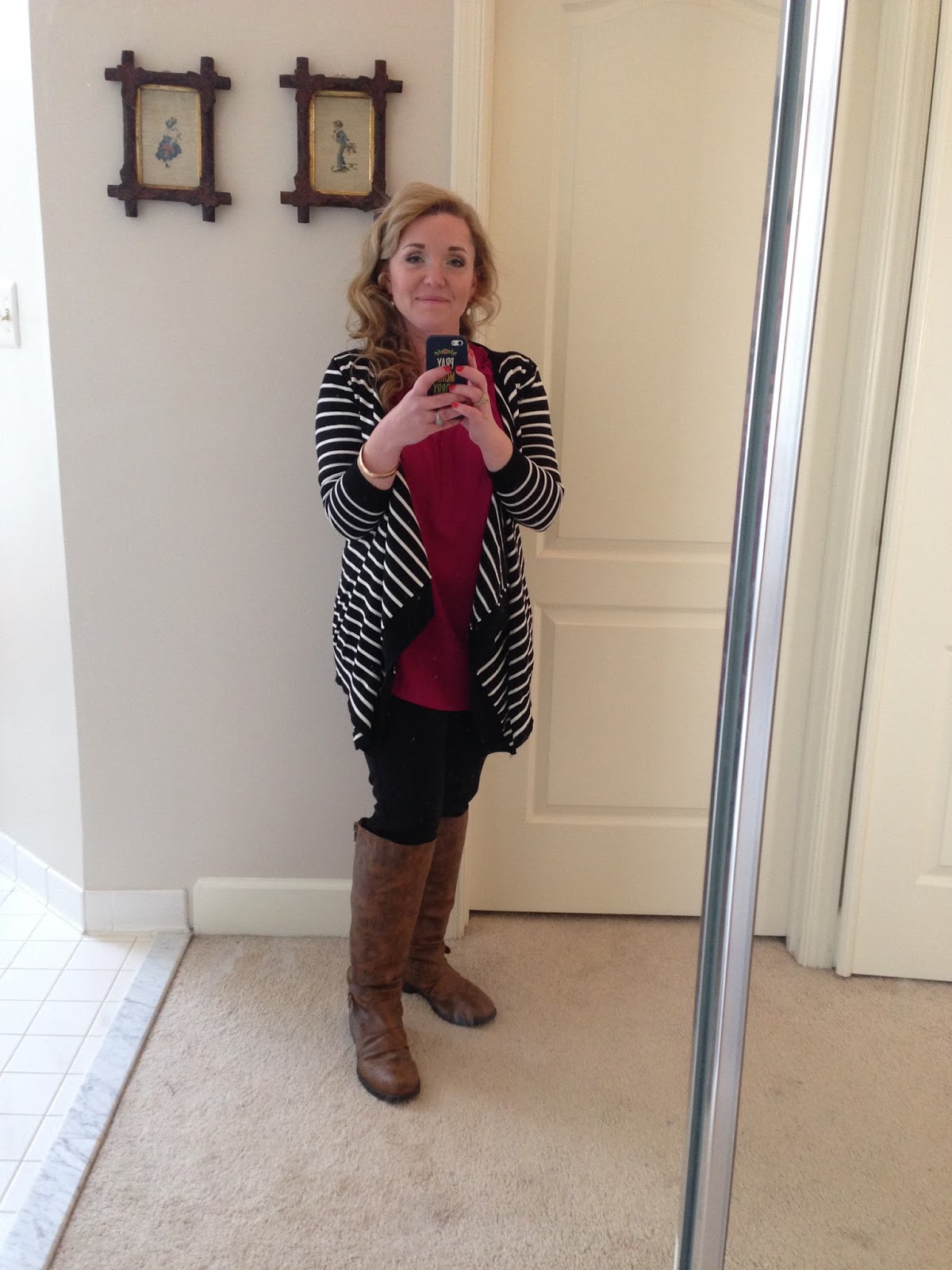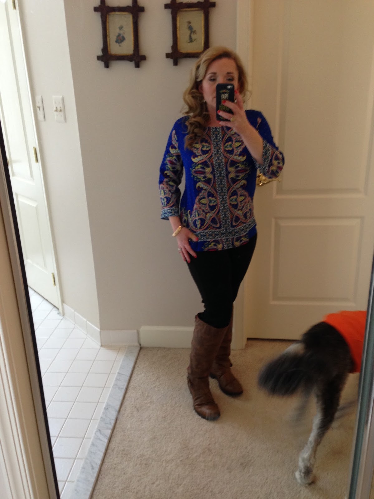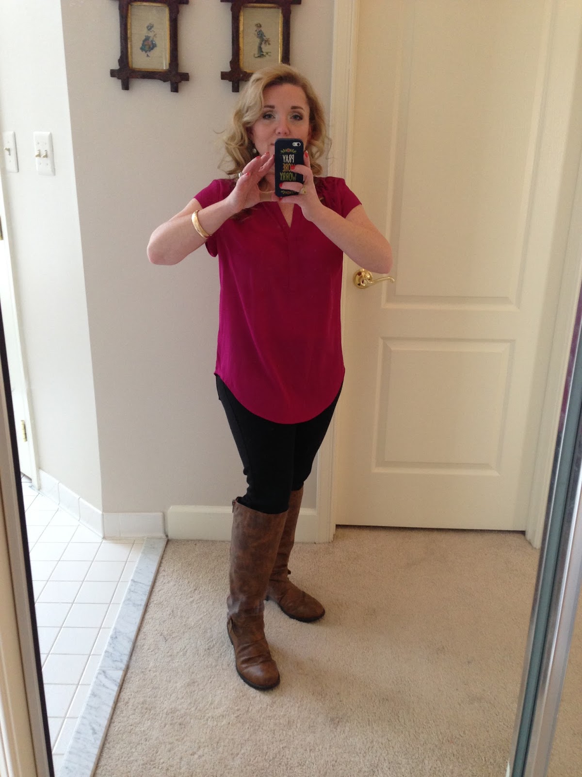 Almost wish I'd kept this shirt, but it was too dressy for my everyday needs. Did keep these awesome Just Black skinny jeans!