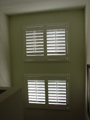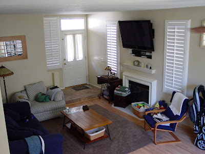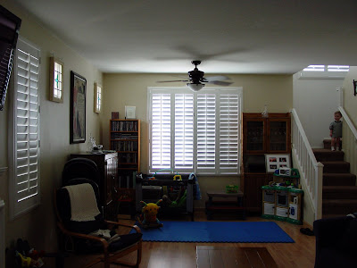The quest to upgrade the house continues - of course we left the family room as the last unimproved space! But we got our new shutters this week(family room, stairway and a slider for the back door). They're BEAUTIFUL! Now, if only we had non-college furniture :)