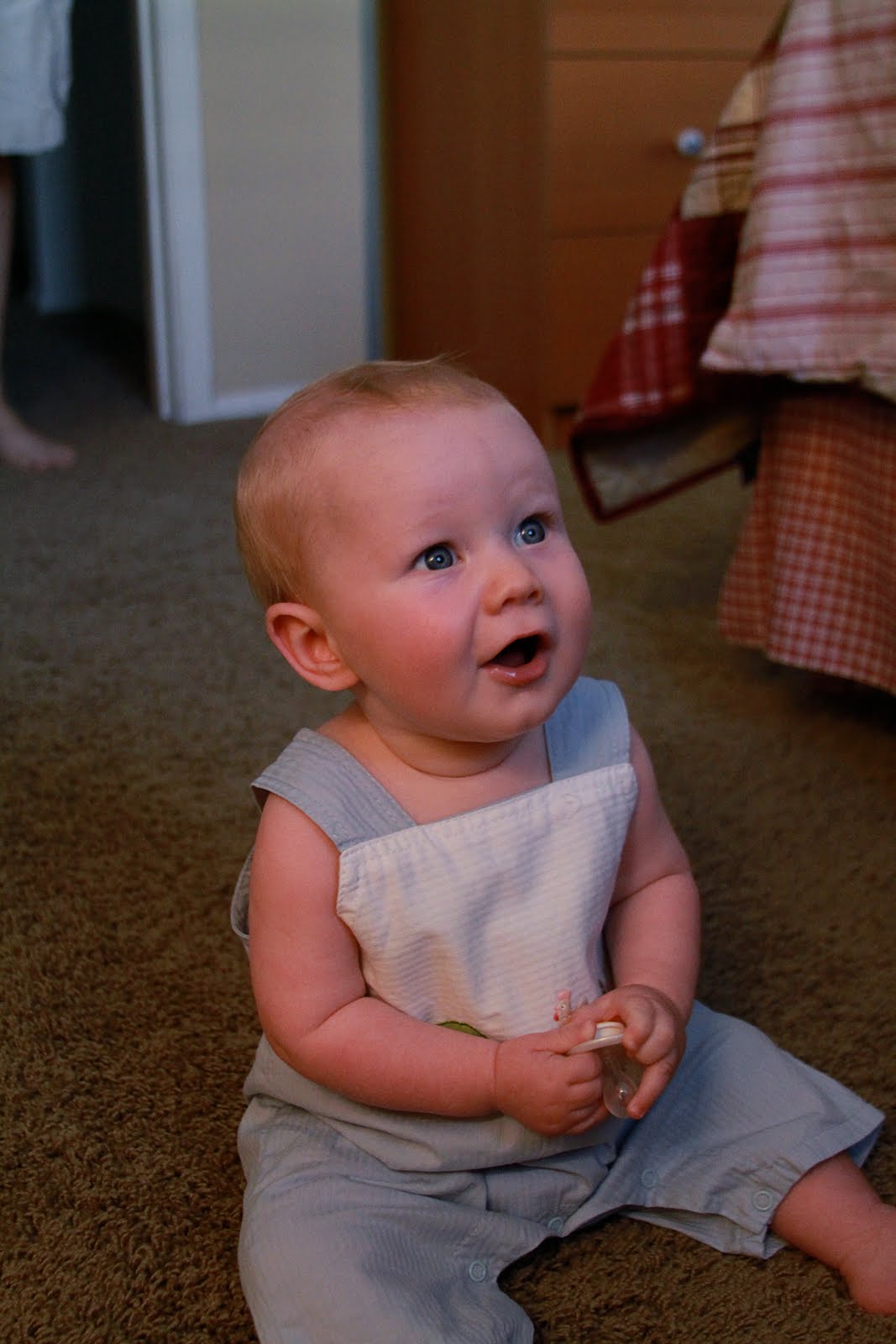 Kell is sitting like a yogi and shows little interest in crawling. And who can blame him, he has four slaves who will bring him anything at the slightest hint of a whimper. He's loving all foods - and will get extremely jealous if he isn't offered tastes of everything the big kids are enjoying. He's a pretty happy little guy but still demanding of everyone's attention. He loves his brothers like nobody's business and is finally happy sitting and playing with them for stretches. I still get sad seeing small babes in arms, but I look forward to seeing how his personality fits into our family.
