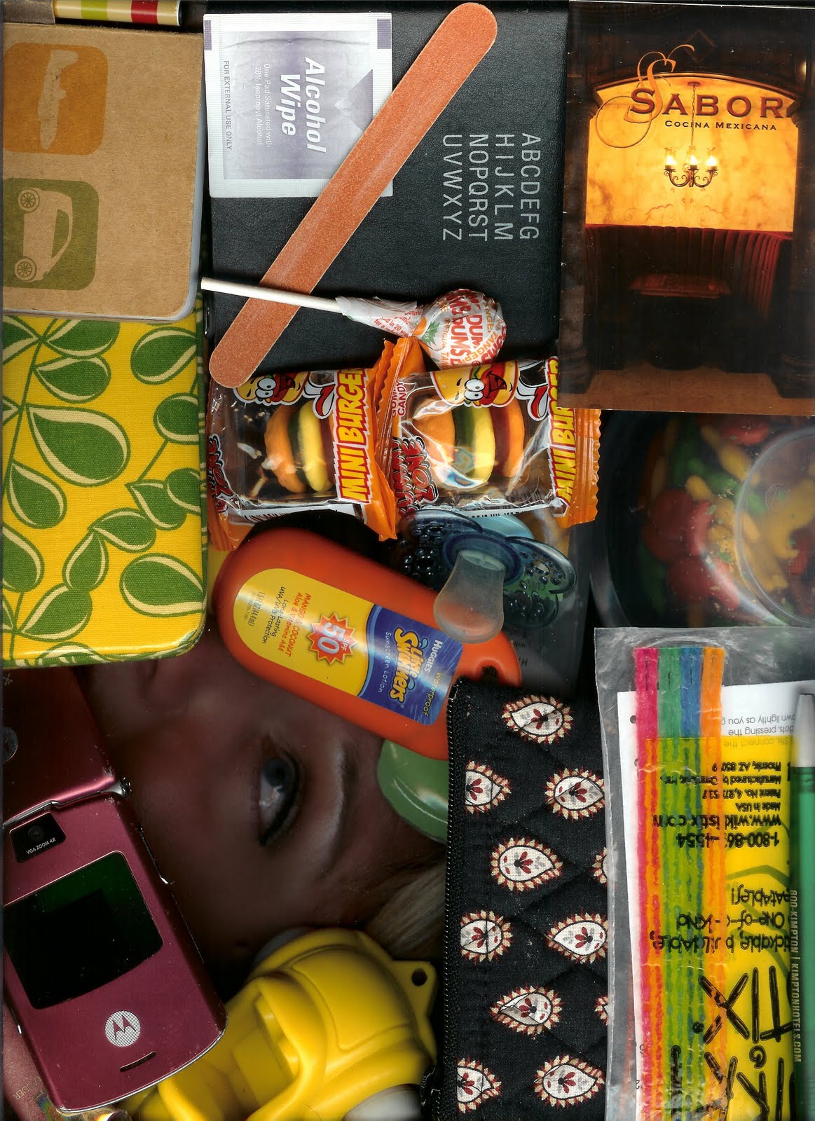 Hmm...not sure if I want my picture taken with random receipts, feminine products, and a couple stray pieces of squashed candy. I like your purse contents way better.