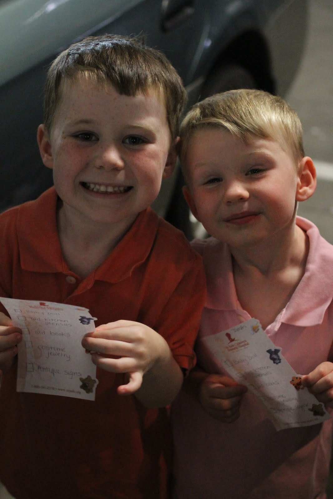 I love to shop. I especially love antique stores that are packed to the gills with treasures and curiosities. I also have three smallish children. You can see where this would pose a problem. Yesterday we took the boys to a bunch of the neat stores over in Ventura and I had a fantastic idea: I made them each a checklist of things to find. This time I made it just five easy things - a doll, antique utensils, old books, old signs and costume jewelry. I also had them work as a team against Brooks and Kell (who had the actual list of things I was looking for). They had a great time and it totally kept them from being bored. When they had checked off everything on their lists, I had lollipops ready. But they were SO good that when they spotted a cupcake shop, I agreed to the upgrade :)