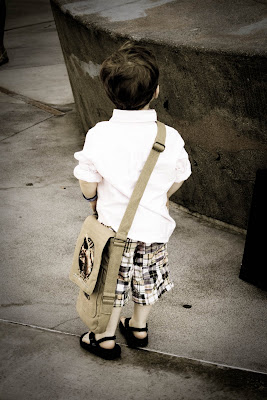 The first few days I had him all dressed to impress. Another mother even noted how handsome and well dressed he was. Then she snickered something about how he clearly must not have gone near the paint yet...PAH! I never met a stain I couldn't handle.